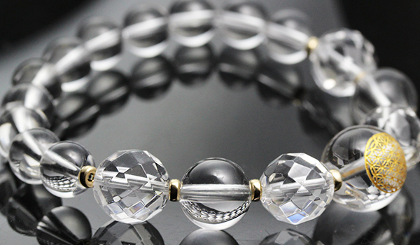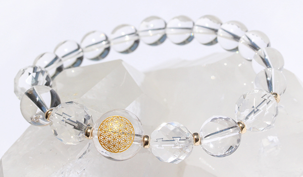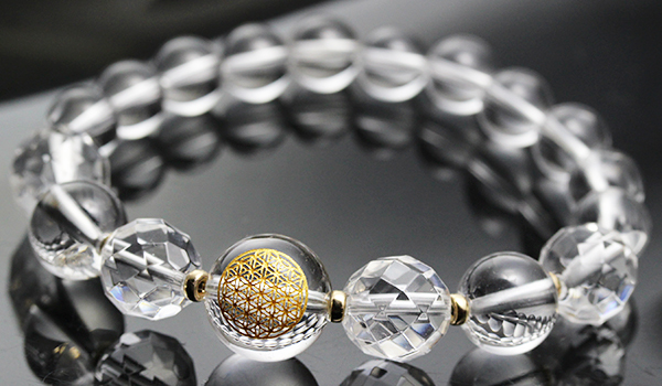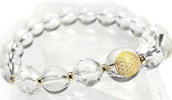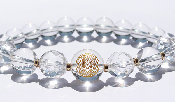 [★]超活性化ブレス(水晶金彫り[フラワーオブライフ]・水晶[64面カット]・水晶) について