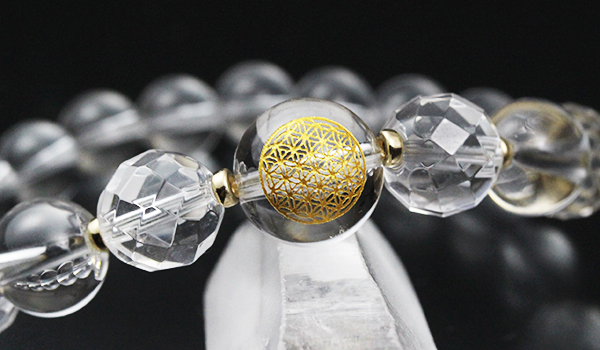 そこで、ブレスレットのメインストーンに選んだのが、神聖幾何学の一つである”フラワーオブライフ”を彫り込んだ水晶ビーズです。