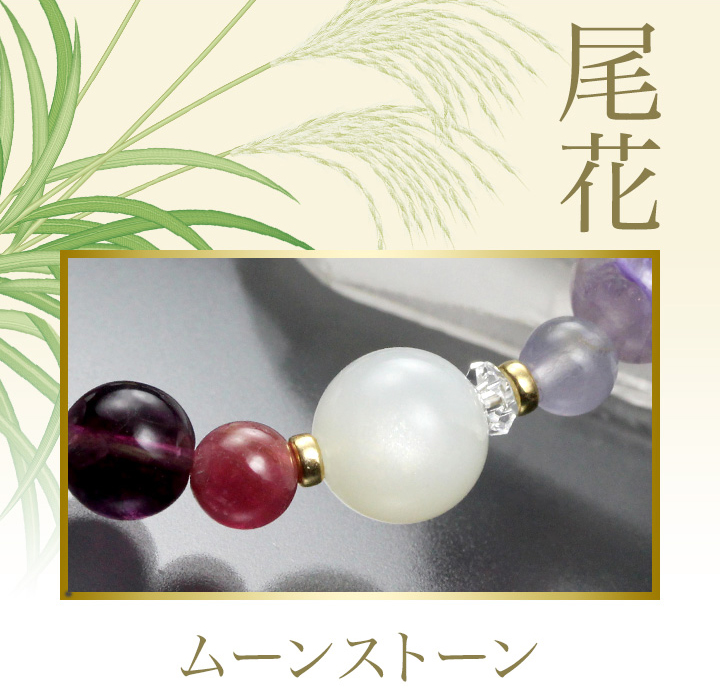 白みがかった色合いの花穂をつける「尾花(オバナ・ススキの別名)」をイメージして選んだのはムーンストーンです。