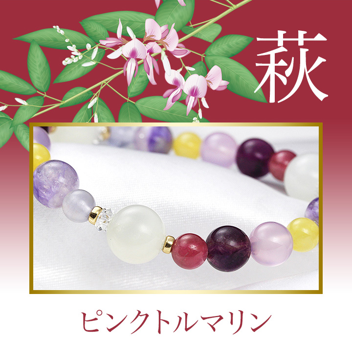 はっきりとしたピンク色の花を咲かせる「萩(ハギ)」をイメージして選んだのはピンクトルマリンです。