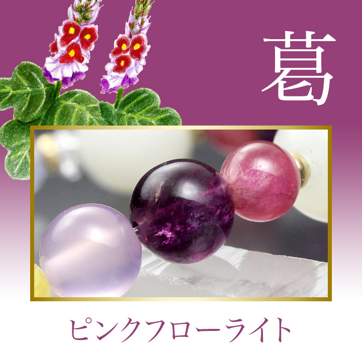 ほんのり紫がかったピンク色で、房状の花を咲かせる「葛(クズ)」をイメージして選んだのはピンクフローライトです。