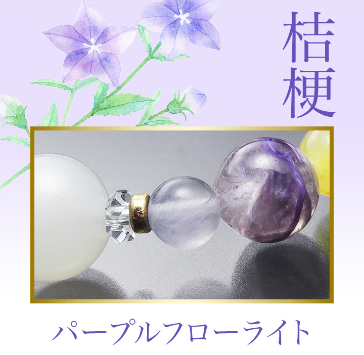 青みがかった紫色で、可愛らしい星型の花を咲かせる「桔梗(キキョウ)」をイメージして選んだのはパープルフローライトです。