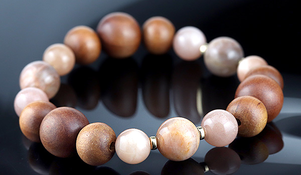 [●]デザインブレス【癒月】(マダガスカル産オーソクレース・サンムーンストーン・白檀・オレンジムーンストーン) について