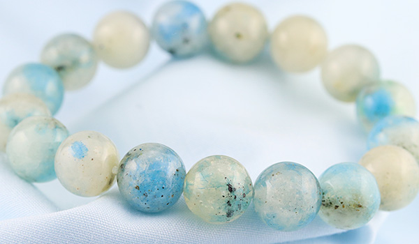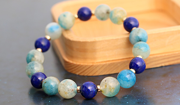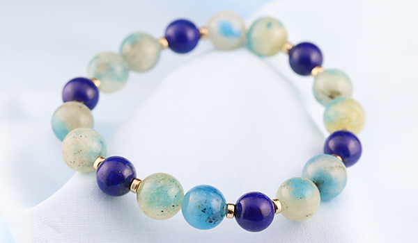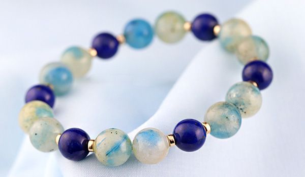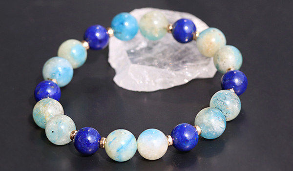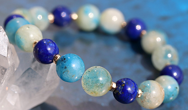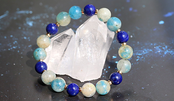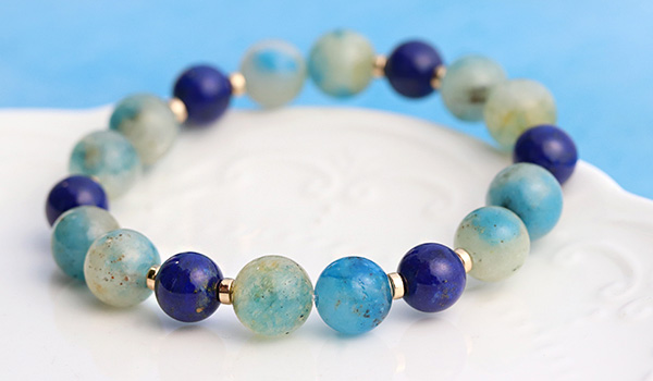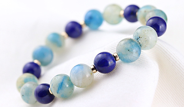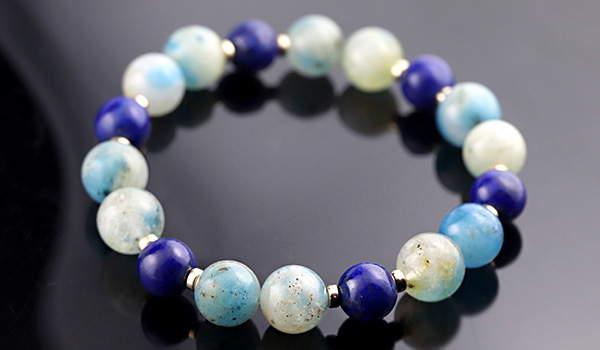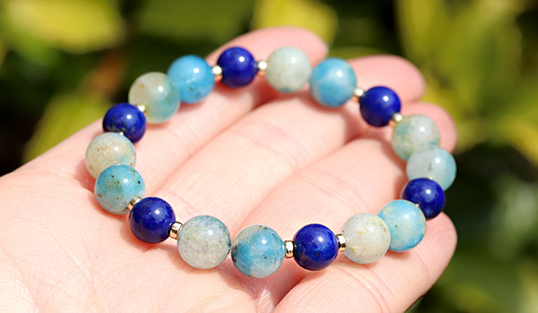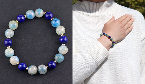 という、異なる青の色あいが楽しめる2種類の天然石で作り上げたブレスレットです。