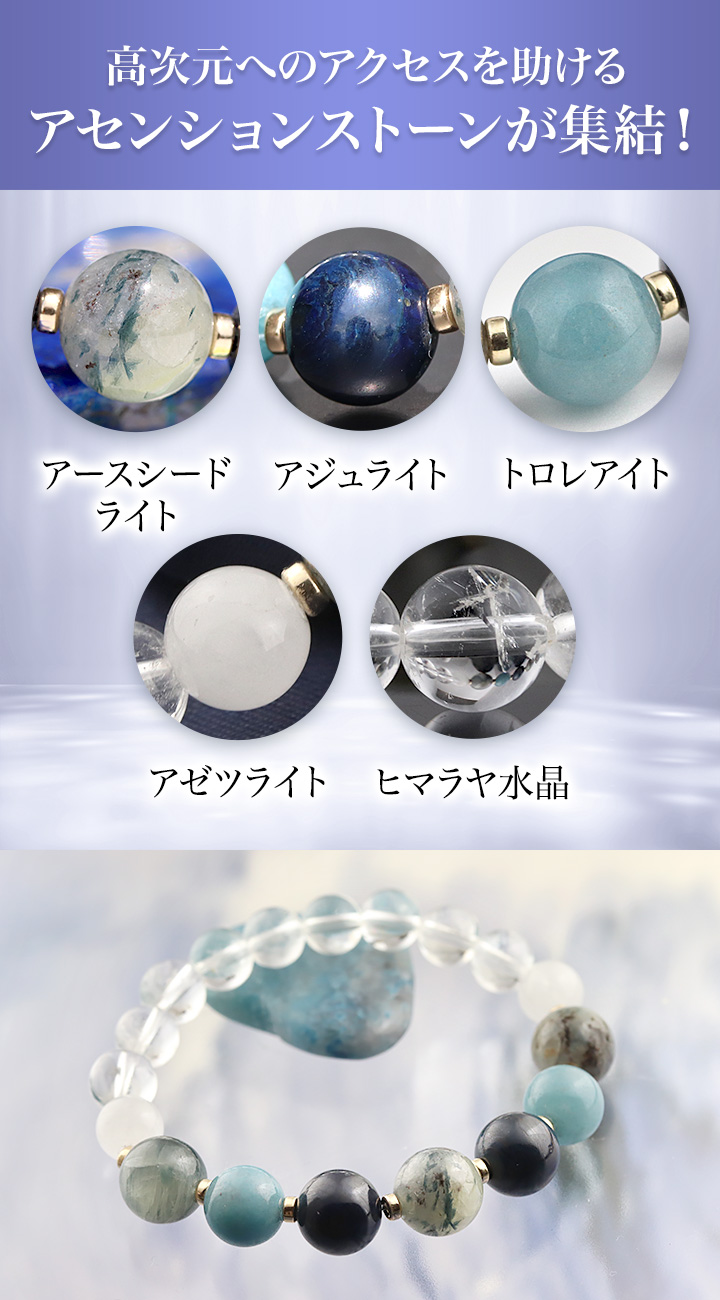 ●5種類ものアセンションストーンで作り上げられたブレスレットがもたらすのは、アセンションへのゲートを開き高次元へと導く力!