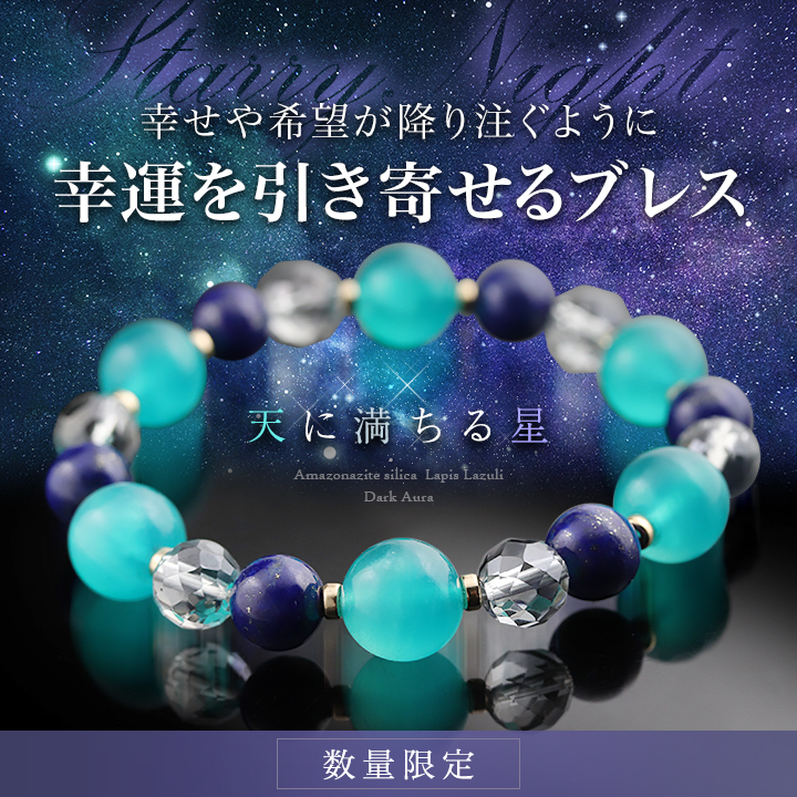 と、その名前の通り空に散りばめられた星の輝きをイメージさせるパワーストーンの組み合わせになっています。