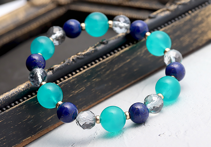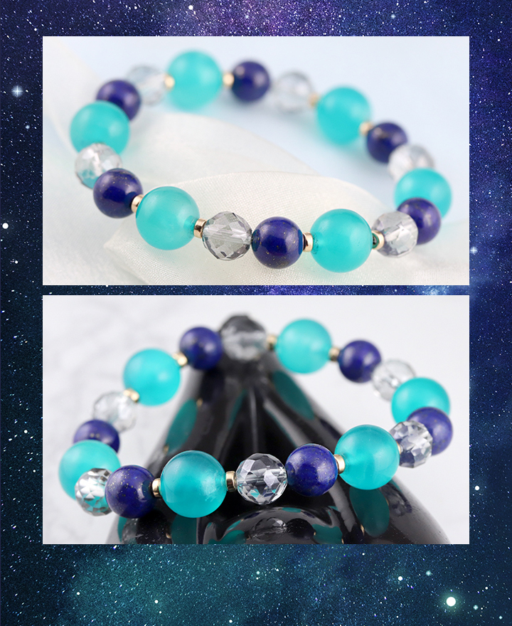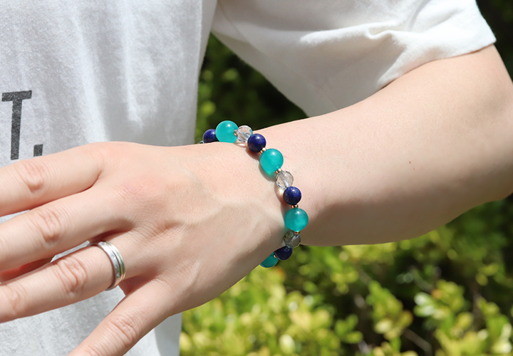 デザインブレス【天に満ちる星】は、爽やかさと深みのある色合いの組み合わせが美しくマッチしたデザイン性の高いブレスレットです。