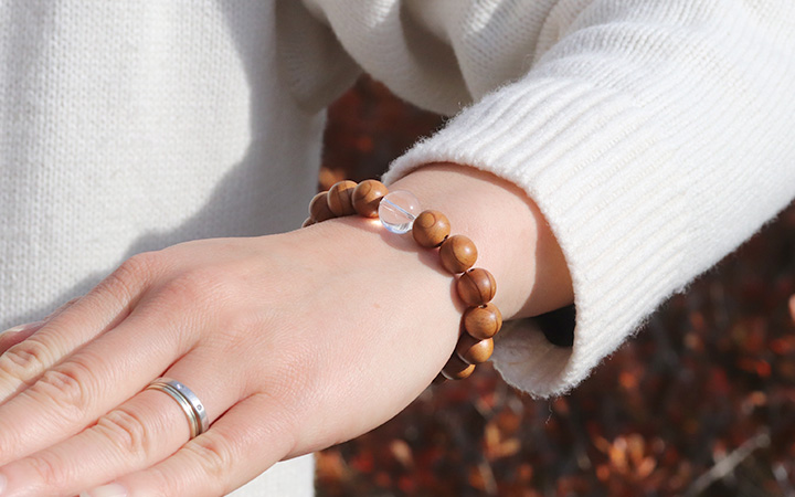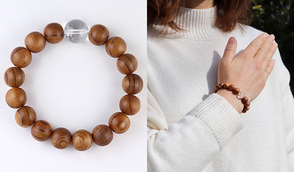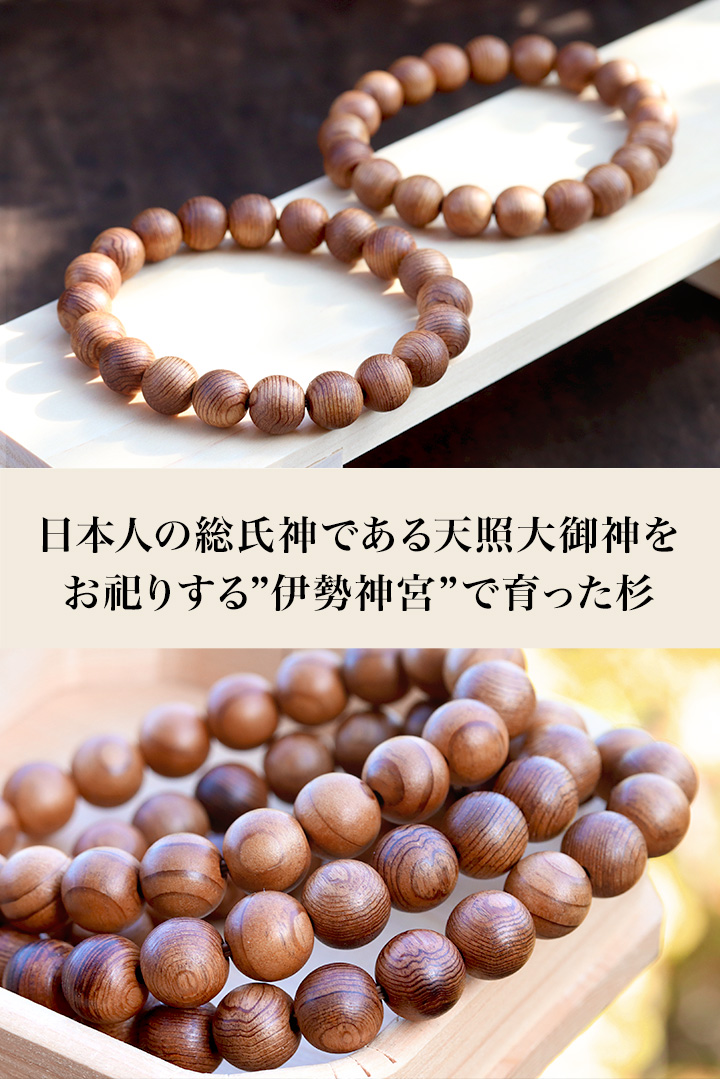木だからこその温かみある表情が美しい、伊勢神宮御山杉のウッドビーズをメインに使用した特別で神聖なブレスレット!