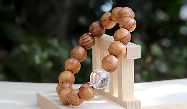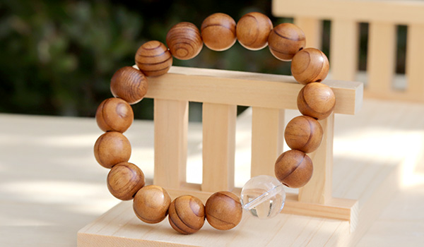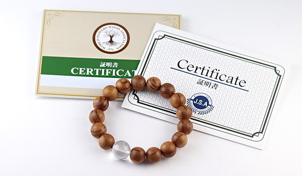 このブレスレットに使用している伊勢神宮御山杉ビーズは、世界銘木協会認定の正規品です。