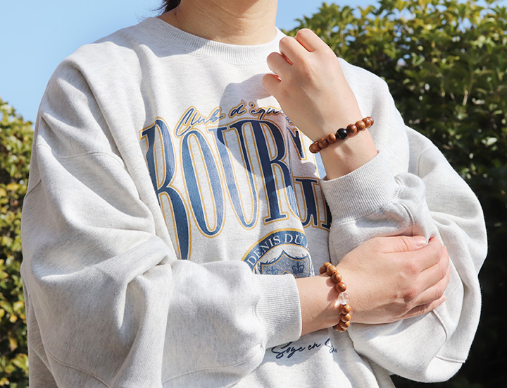 ※使用するごとに、ビーズの色味や艶感に変化が出てくる場合がございます。天然素材ならではの「味わい」としてお楽しみくださいませ。