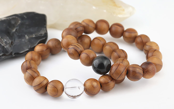 デザインブレス(山梨県黒平産水晶・伊勢神宮御山杉[大貴珠])とデザインブレス(山梨県黒平産黒水晶・伊勢神宮御山杉[大貴珠])を