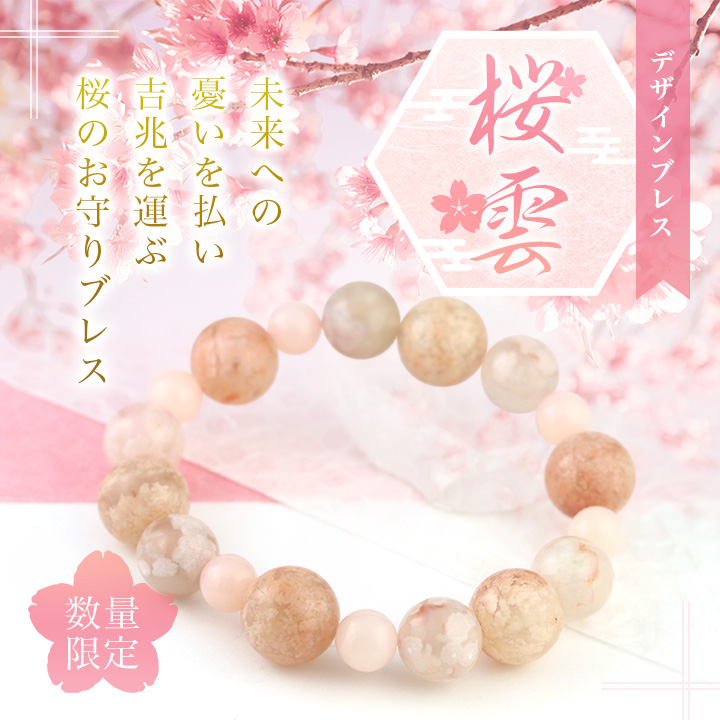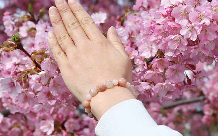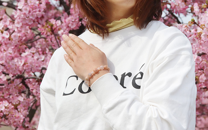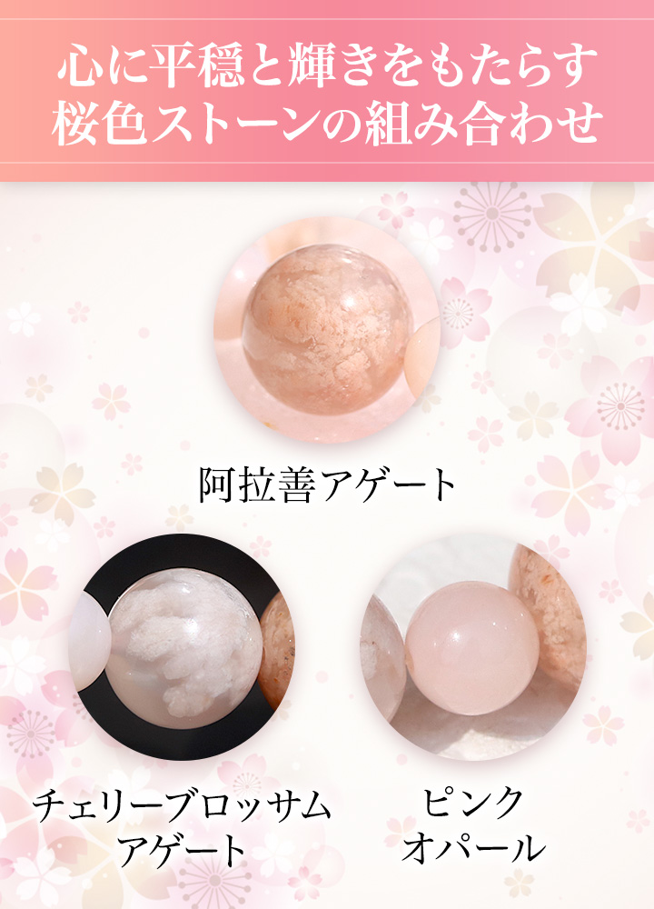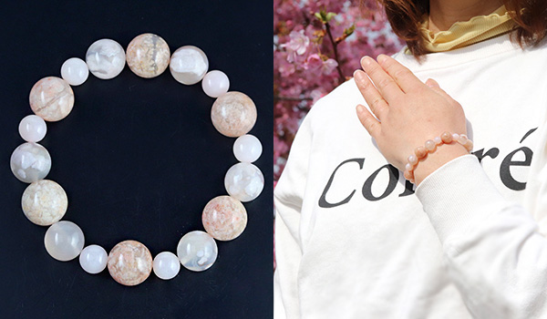 桜をイメージさせるパワーストーンを3種類組み合わせてデザインしたブレスレットです。