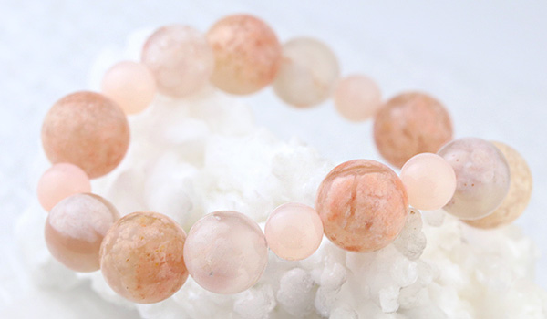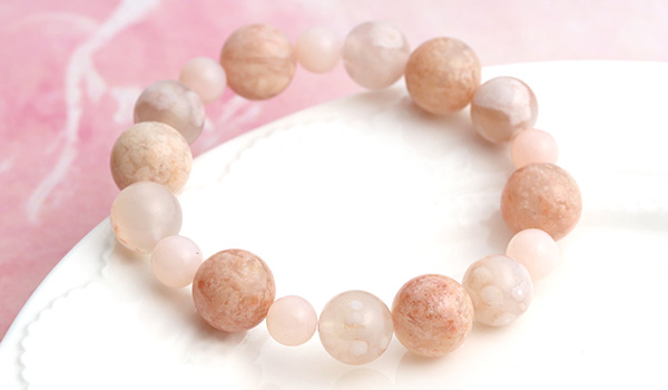 ●桜の花びらを思わせる発色のパワーストーンだけで作り上げた、華やかで美しいブレスレット