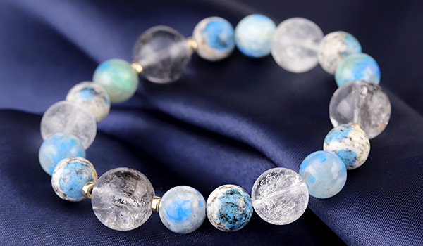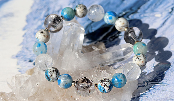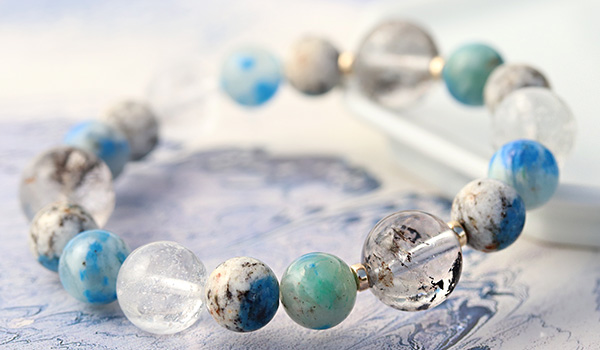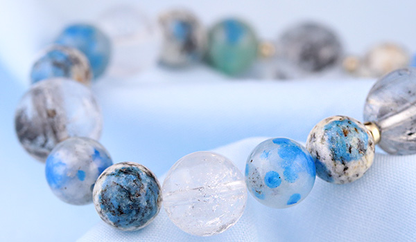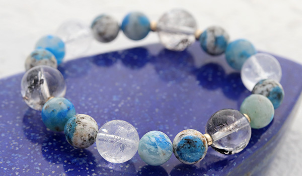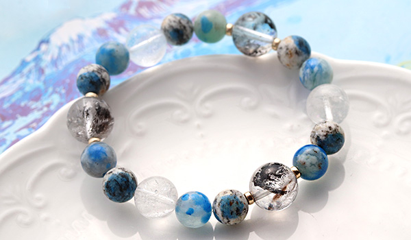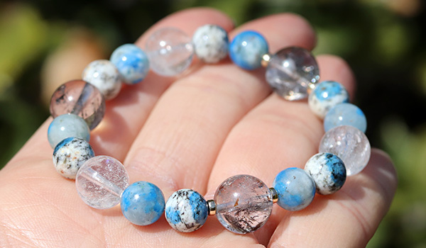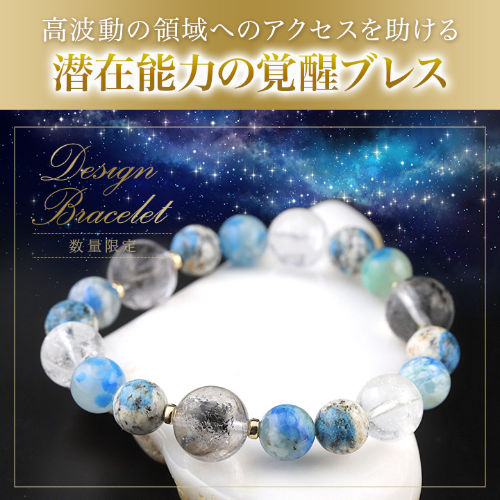 [●]デザインブレス(ヒマラヤ産エレスチャルクォーツ・K2ブルー・K2ブルーシリカ・アゼツライト) について