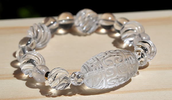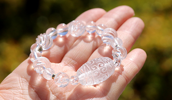 また、水晶は組み合わせた他の石が持つ力を強化してくれますので、ブレスレットのポイントに組み込んだダンビュライトの、人生に喜びと豊かさをもたらすエネルギーを