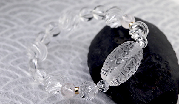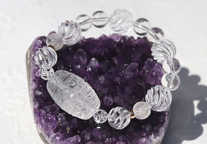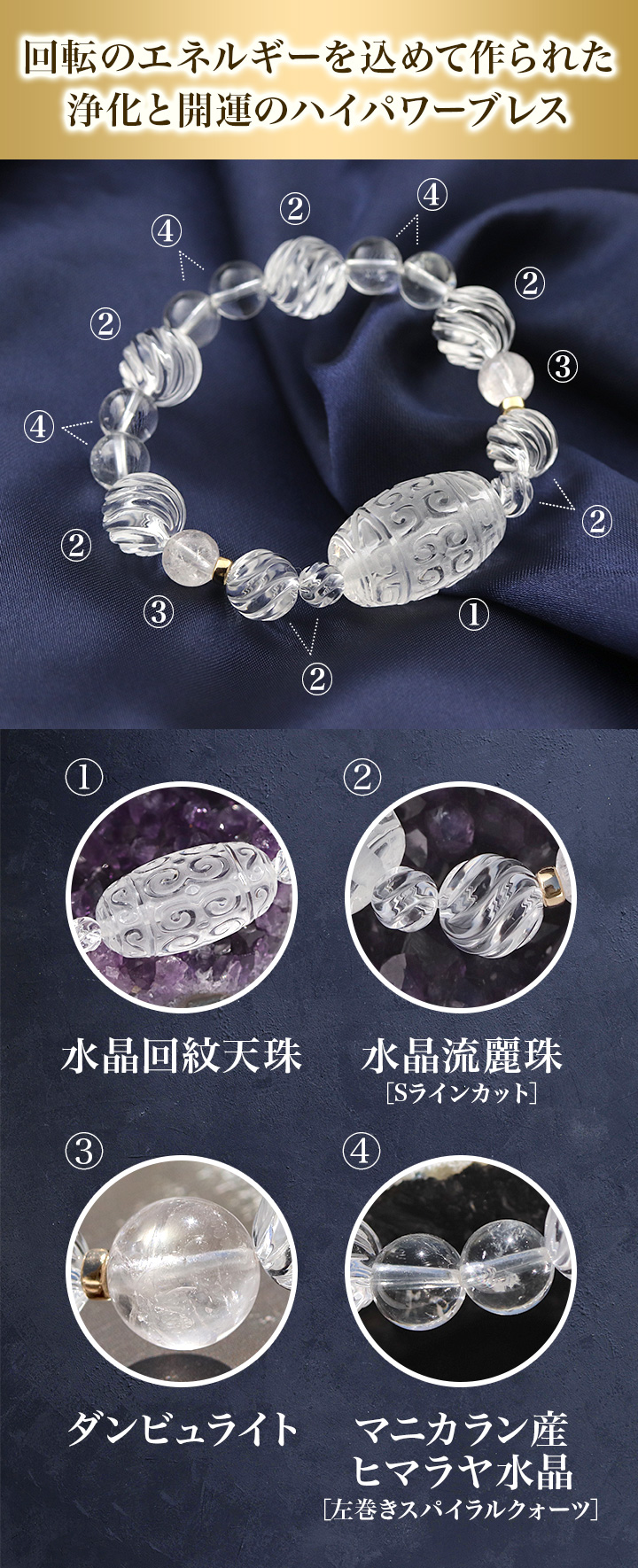 [●]回紋天珠ブレス(水晶回紋天珠・水晶流麗珠[Sラインカット]・ダンビュライト・マニカラン産ヒマラヤ水晶[左巻きスパイラルクォーツ])-002 について
