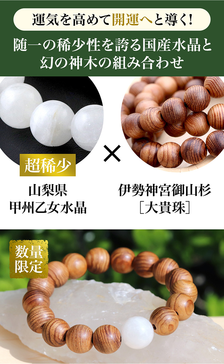 [●]デザインブレス(山梨県産甲州乙女水晶・伊勢神宮御山杉[大貴珠])※ギャランティカード付き について