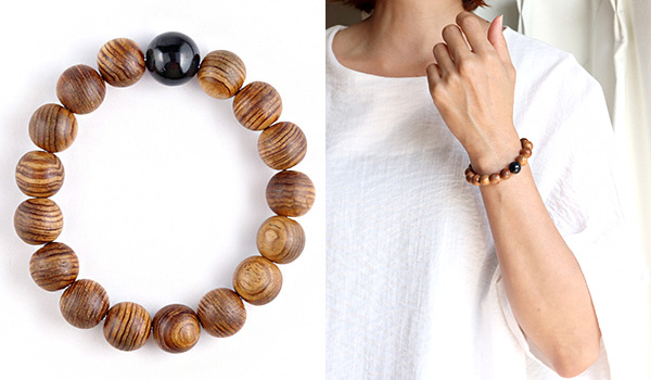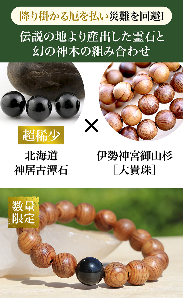 [●]デザインブレス(神居古潭石[真黒]・伊勢神宮御山杉[大貴珠])※ギャランティカード付き について