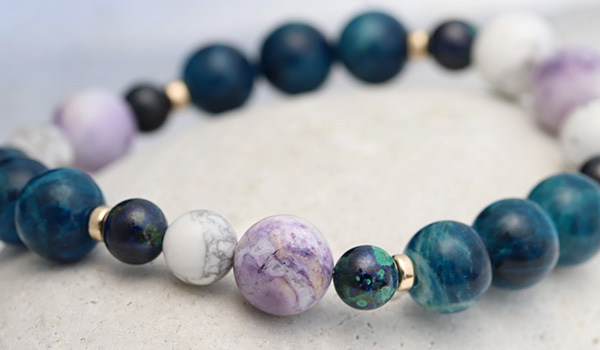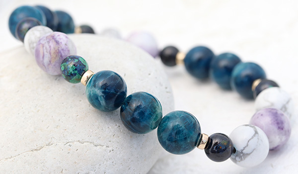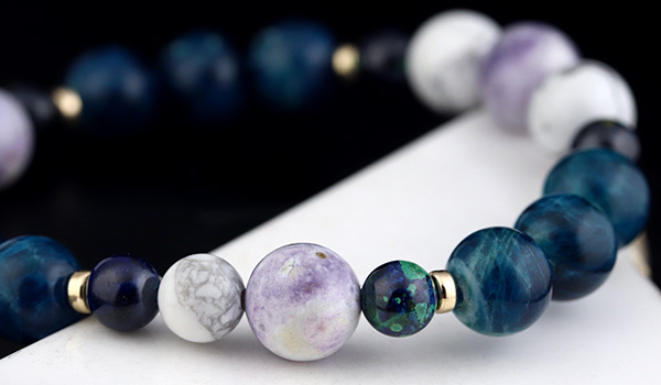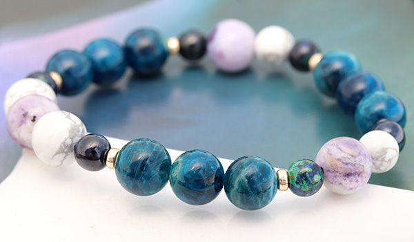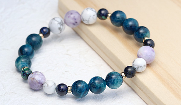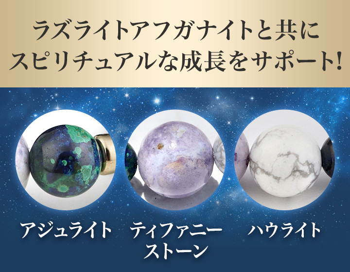 ラズライトアフガナイト8〜8.5mm、アジュライト5.5〜6mm、ティファニーストーン8〜8.5mm、ハウライト6〜6.5mm・8〜8.5mm