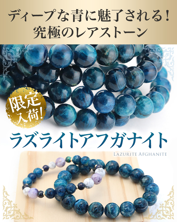 このブレスレットの組み合わせで鍵となるのが、初登場となる「ラズライトアフガナイト」です。