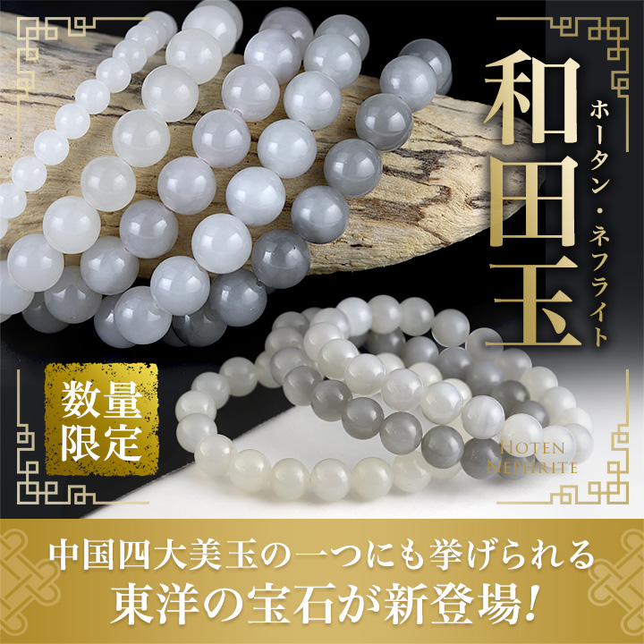 ●ネフライトの中でも別格の存在!中国四大美玉の一つにも挙げられる”和田玉”のみを使用した、モノトーンカラーがスタイリッシュなブレスレット