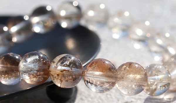 今回のブレスレットには、オレンジブラウン系から透明度の高いクリアなゴールデンブラウンの色合いのもので、上品な煌めきを放つブラジル産のシャンパントパーズを使用しました。