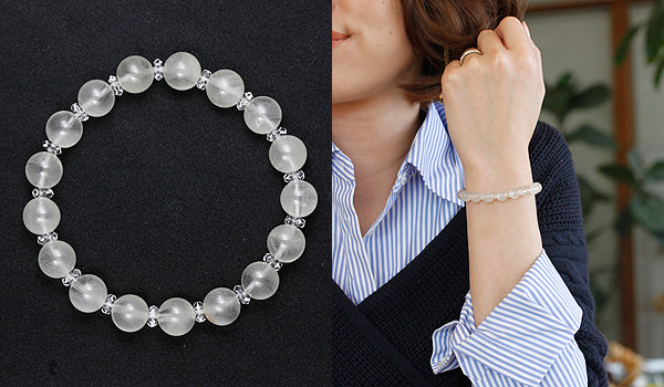メインの石と水晶を交互に使った、非常にシンプルなブレスレットです。
