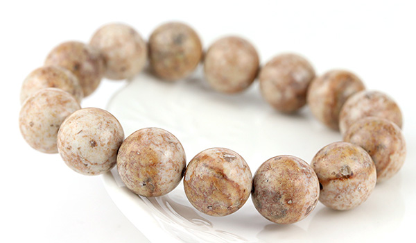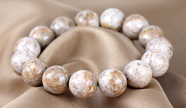 今回入荷できた姫川薬石は地色がアイボリーベージュのような色合いで、表面には茶色の内包物が模様を描くかのように現れています。