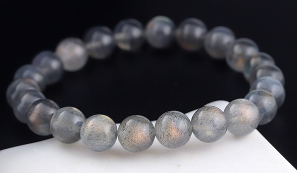 大抵のラブラドライトが浮かべるラブラドレッセンスは、ブルーやグリーンがほとんどですが、こちらのブレスレットには、ラブラドライトの夢のように美しい光彩の中でも