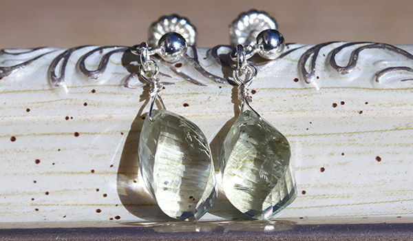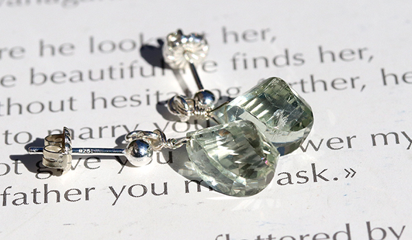 一つ一つのカット面が比較的大きめに磨かれていることで、光を当てるとキラリとダイナミックに光を跳ね返して、石の透明度と相まって、ピアスの存在を強く印象付けます。