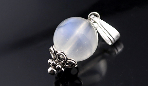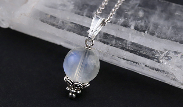 抜群の透明感を持つロイヤルブルームーンストーンの9.5〜10mm珠を使用した、1粒タイプのペンダントです。