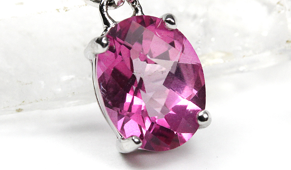 鮮やかなホットピンクの彩りが美しい、ピンクトパーズを使用した一粒ペンダントをご紹介します。
