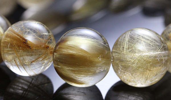 黄金の輝きを放つルチルは、中国語で太い針を意味する「タイチン」の名前にも遜色ないしっかりとした太さを持っています。タイチンルチルクォーツはもともと、相当な量の原石からほんの僅かしか採れない、