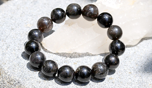 今回は”黒平(くろべら)鉱山”より産出した12mm珠の黒水晶をひと繋ぎにしたブレスレットを、
