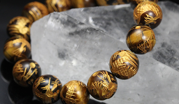 [●]大玉ブレス(タイガーアイ金龍彫り)12mm について