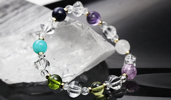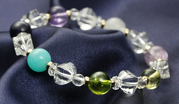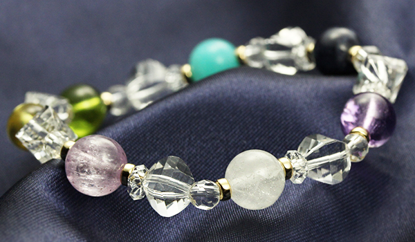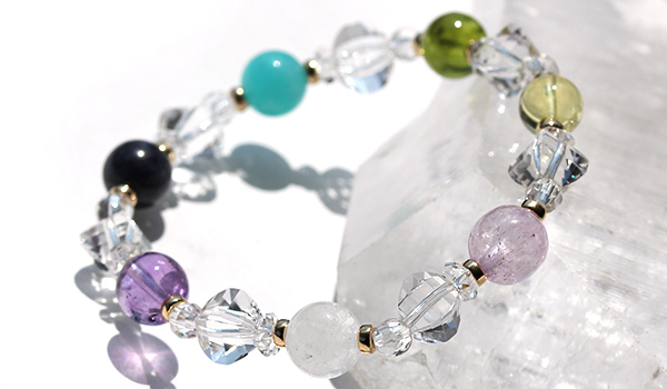 このデザインブレス【平和の虹】は、そのタイトル通り、平和というキーワードで繋がる7色の天然石を使用した虹色のブレスレットです。
