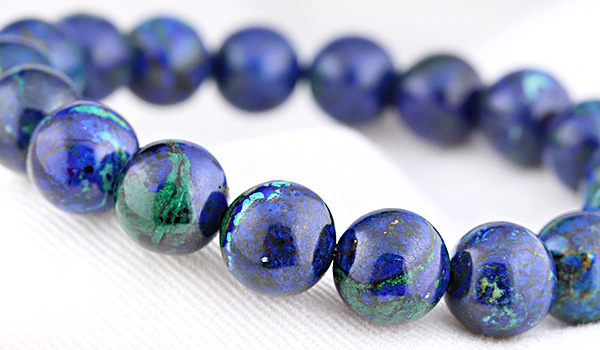 また、アジュライトがマラカイトを伴って産出することも多く、現在では緑色のマラカイト部分が大半を占めているようなものが、アジュライトとして流通していることがかなり多くなっています。