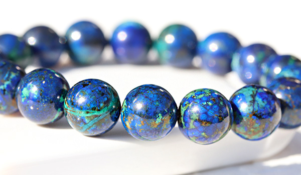 今回ブレスレットに使用しているアジュライトは、鮮やかで明るさを感じる青色が美しいビーズですです。