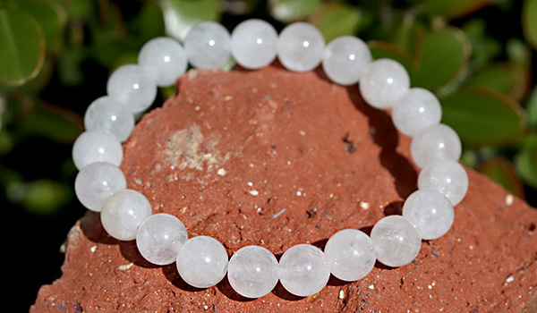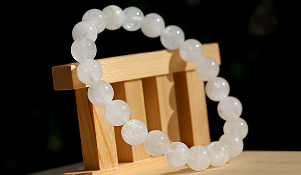 今回ブレスレットに使用している水晶ビーズは、市場に多く流通するクリアなものではなく、靄がかったような柔らかい白色になっていること。