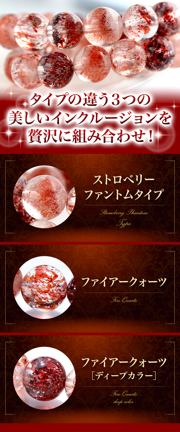 セイクリッドセブン[ストロベリーファントムタイプ]AAAAA7.5mm、ファイアークォーツSA7.5mm、ファイアークォーツ[ディープカラー]GA7mm