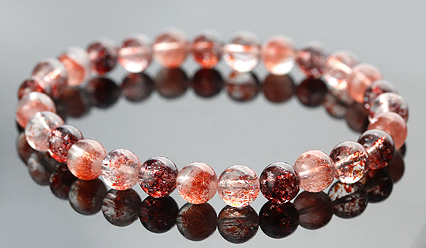 [●]【一点もの】【特選品】素通しブレス(セイクリッドセブン[ストロベリーファントムタイプ]AAAAA・ファイアークォーツSA・ファイアークォーツ[ディープカラー]GA) について