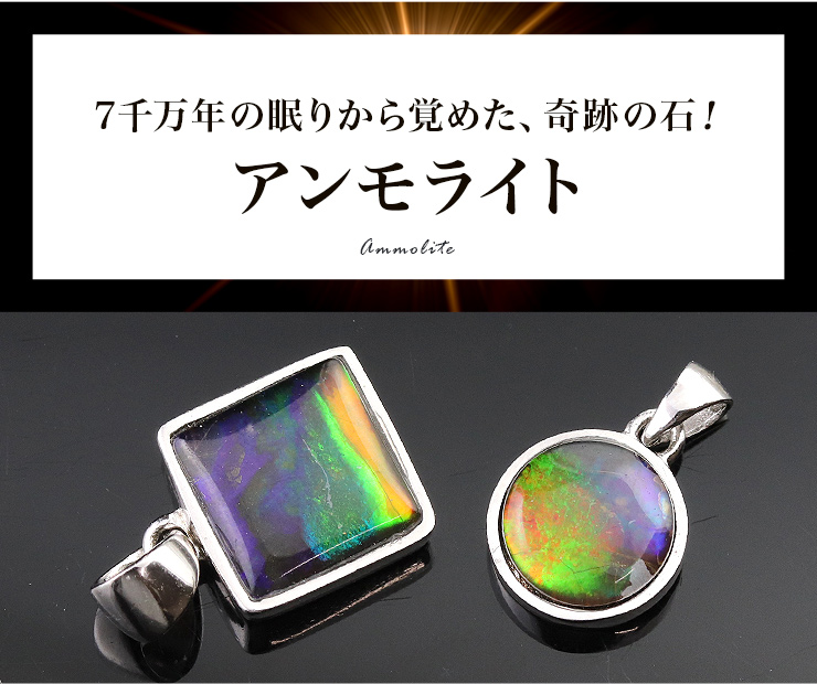それぞれに異なる美しく鮮烈な輝きを放つアンモライトを使用した、