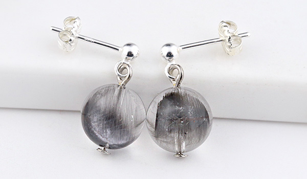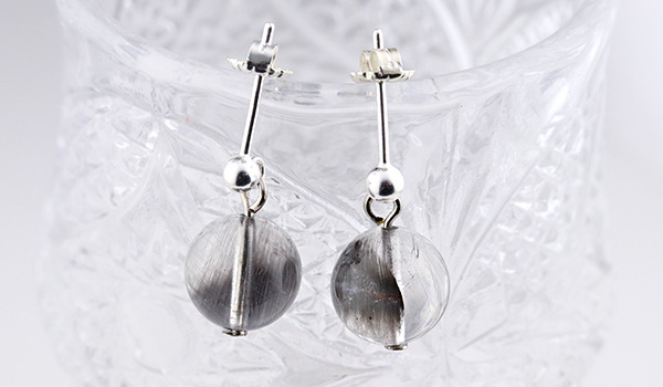 プラチナと名付けられるだけのことはある、白金の輝きが美しいルチルを内包したプラチナクォーツの9mm珠に、シルバー925素材のピアスパーツを組み合わせたピアスが、