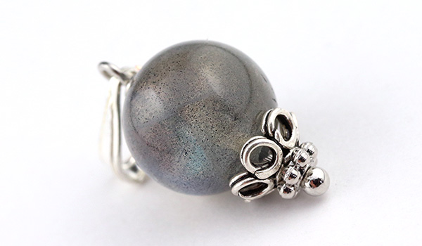 一見地味なグレーの地色に、その見た目からは想像もできない幻想的な色彩を秘めたラブラドライトの10mm珠を使用した、1粒タイプのペンダントです。