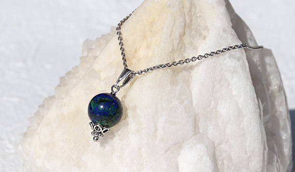 ●まるで宇宙から地球を眺めているような、沈んだ青色をベースに緑色や赤茶色が混じり合ったアジュライトを使用した1粒ペンダント