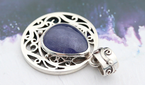 眺めるだけでも幸せな気持ちにさせてくれる美しいタンザナイトに、細かな装飾の合わさった神石(カムイ)ペンダント。