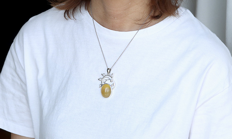 本当に美しいイエローオパールのルースを使用したペンダントです。