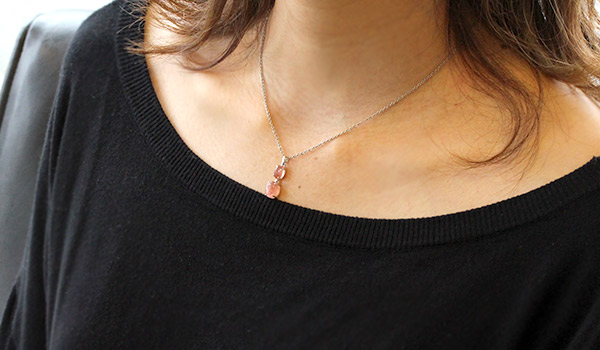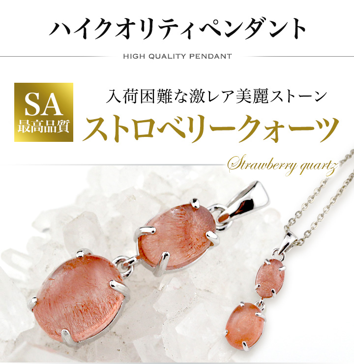 優しい赤みを帯びた可愛らしい色合い、柔らかさを感じさせる光沢も相まって愛らしさが際立つストロベリークォーツのペンダントが、本当に久しぶりに入荷できました!
