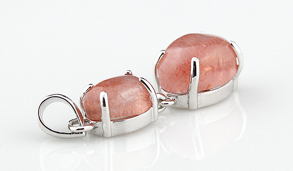 今回のペンダントに使用しているストロベリークォーツのルースは、インクルージョンが全体的に入っているものをなめらかなカボションに磨き上げたものです。