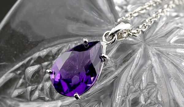 深みのある紫の色合いが上品で、引き込まれてしまいそうな透明感のあるアメジストを使用した、一粒ペンダントをご紹介します。